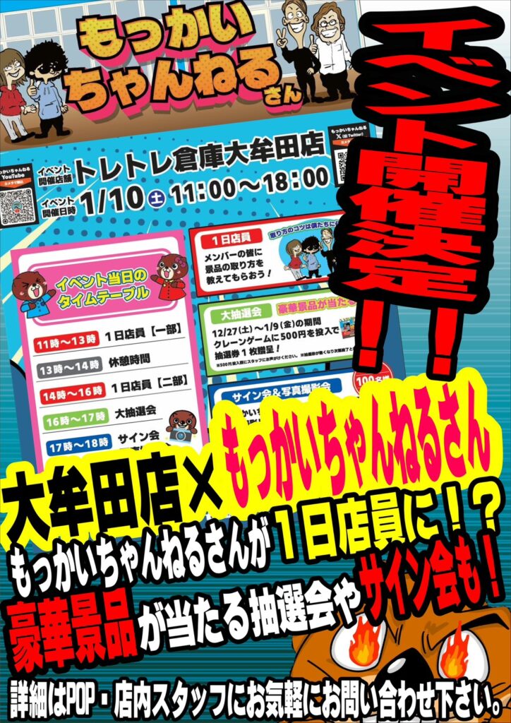 🤩【イベント情報】🔥 トレトレ倉庫大牟田店×もっかいちゃん…